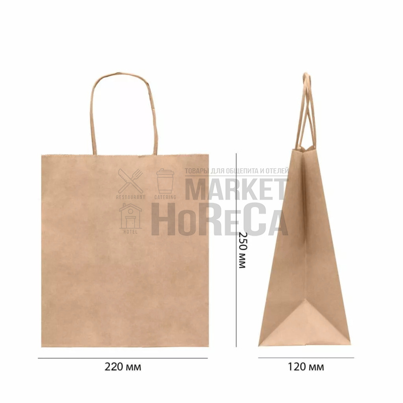 Пакет крафт с крученой ручкой 220х120х250 (1кор*250шт)