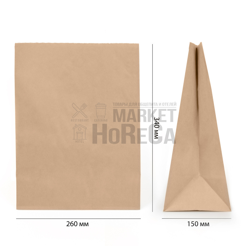 Пакет крафт без ручки 260х150х340 (1кор*400/500шт)